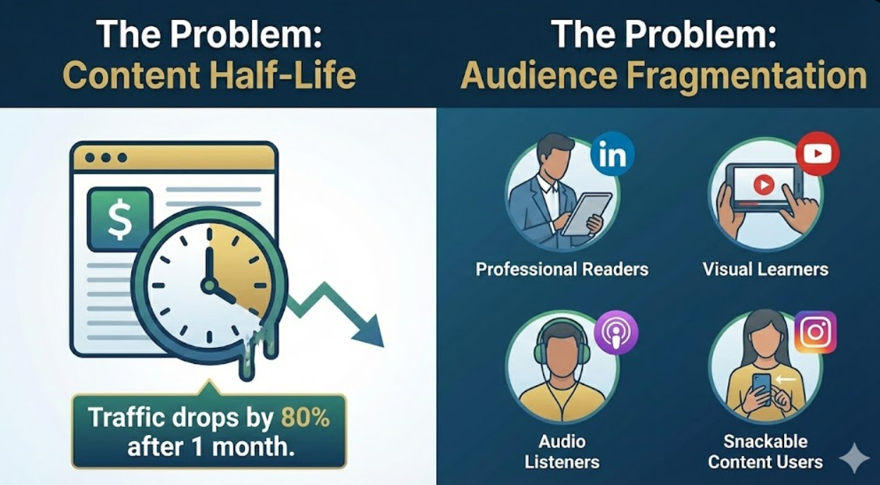 Audience fragmentation across platforms means different segments of your target audience consume content in fundamentally different ways. Some professionals read long-form LinkedIn articles during commutes. Others watch YouTube videos for educational content. Podcast listeners absorb information during exercise or driving. Instagram users prefer visual, snackable formats. Creating content exclusively in one format misses substantial audience segments preferring alternative consumption methods.