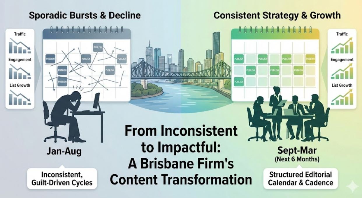 A Melbourne financial planning firm published detailed monthly blog posts covering superannuation strategies, tax planning, and investment approaches. Each post took 4-6 hours to research and write. Posts averaged 800 monthly readers. Social media presence was minimal. Email marketing was sporadic. The firm's expertise reached a narrow audience despite substantial content investment.