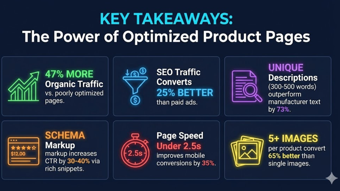 Every unoptimized product page represents lost revenue. Product page SEO is the systematic process of ensuring your products appear when high-intent shoppers search. Unlike paid advertising requiring ongoing budget, optimization is largely one-time work generating compounding returns.