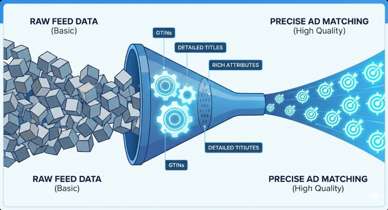 - Data Quality is Ad Quality: Your Google Shopping feed acts as the "keyword list" for your campaigns. Rich, accurate attributes (like GTINs and detailed titles) directly influence which search queries trigger your ads.