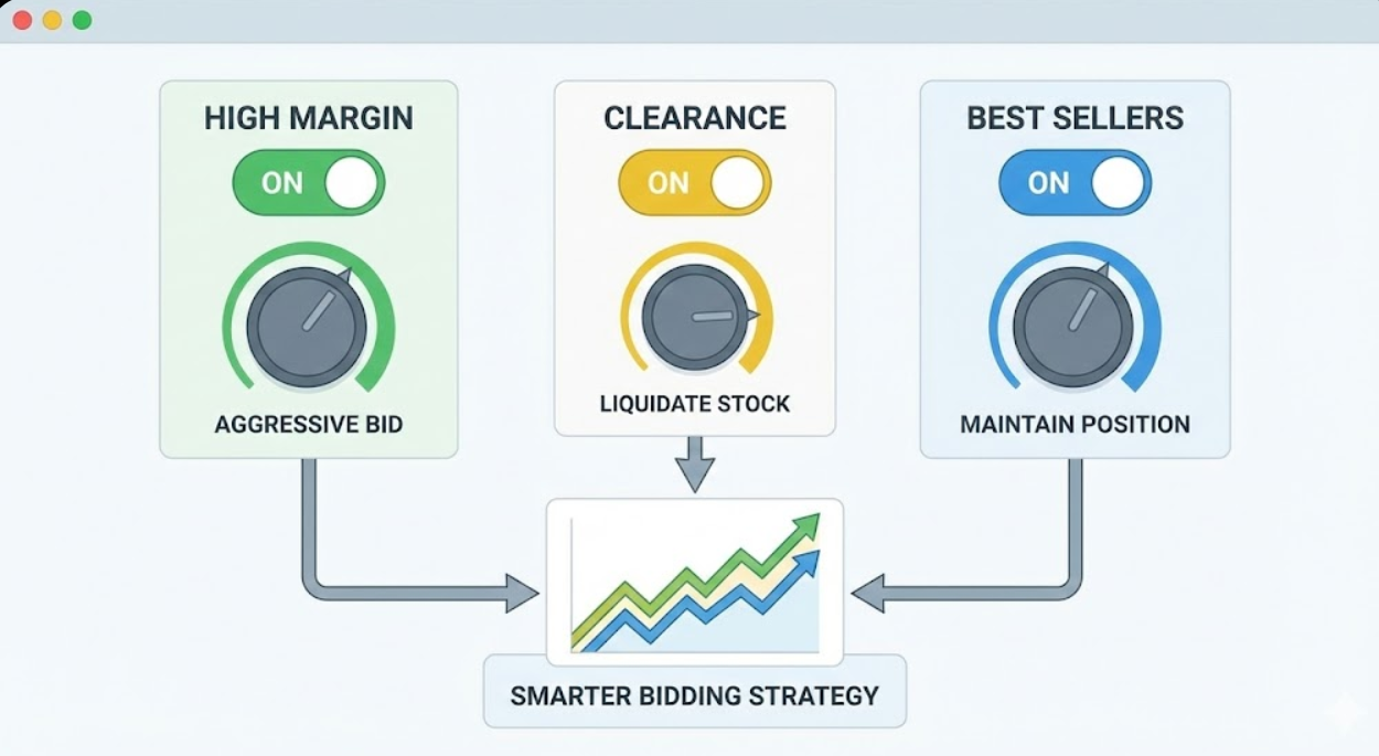 Imagine being able to bid aggressively on your "High Margin" items while pulling back spend on "Low Margin" stock. That is the power of Custom Labels.