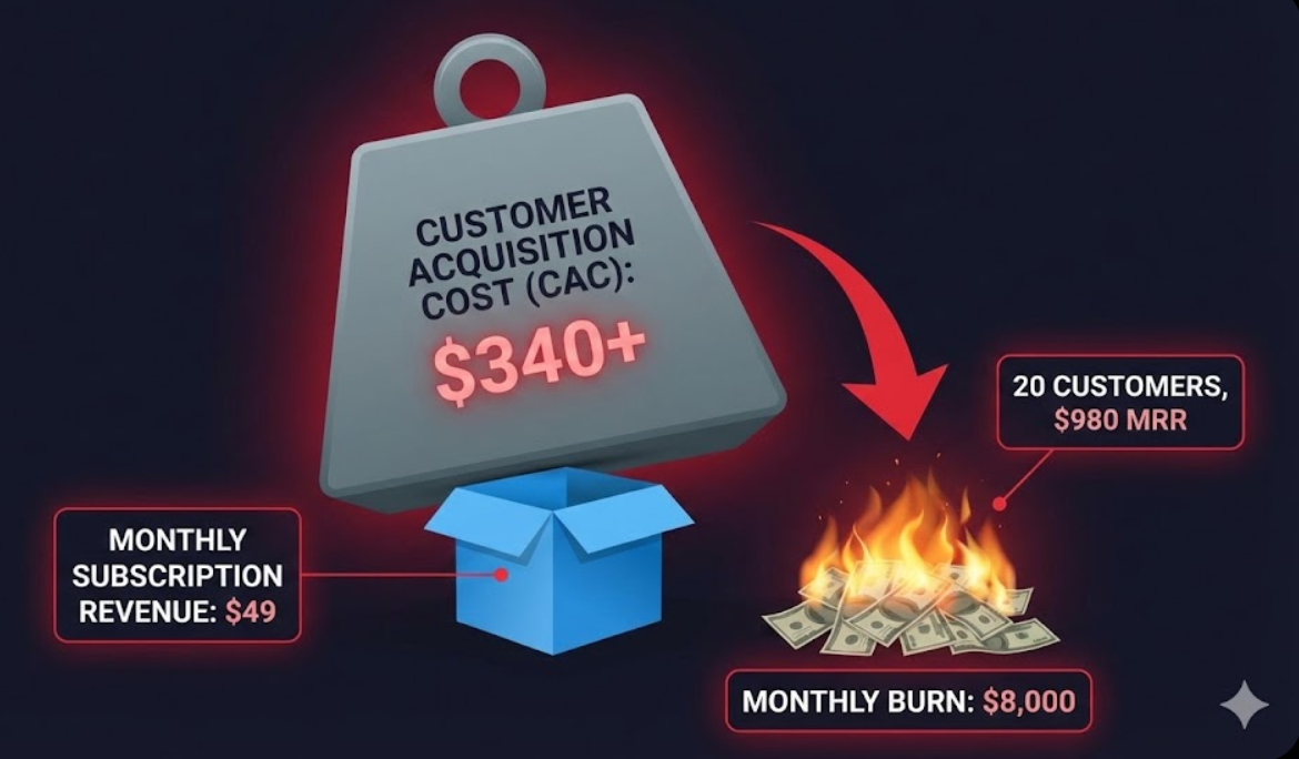 Traditional digital advertising produced discouraging early results. Google Ads cost per acquisition exceeded $340—unsustainable against a $49 monthly subscription. Facebook Ads attracted clicks from irrelevant audiences despite precise targeting. The startup was spending $8,000 monthly acquiring approximately 20 customers, generating $980 in new monthly recurring revenue. The maths was catastrophic.