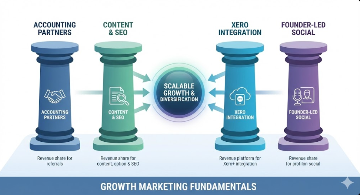 They pivoted to growth marketing fundamentals. Identified that accounting firms were natural distribution partners—their clients needed exactly the product the startup had built. Developed referral programme offering accounting firms revenue share for client introductions. Created comparison content ranking for searches their ideal customers made when evaluating expense software options. Built integration with Xero that existing Xero users would discover through Xero's marketplace. Launched LinkedIn content targeting small business owners through genuine founder insights rather than advertising.