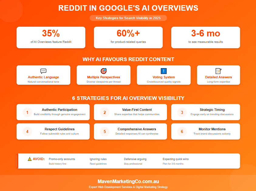 The integration of Reddit into Google's AI Overviews demands strategic, authentic community engagement. Maven Marketing Co specialises in ethical digital strategies that build genuine connections whilst optimising for emerging search technologies. Let us help you harness community discussions to enhance your search visibility.