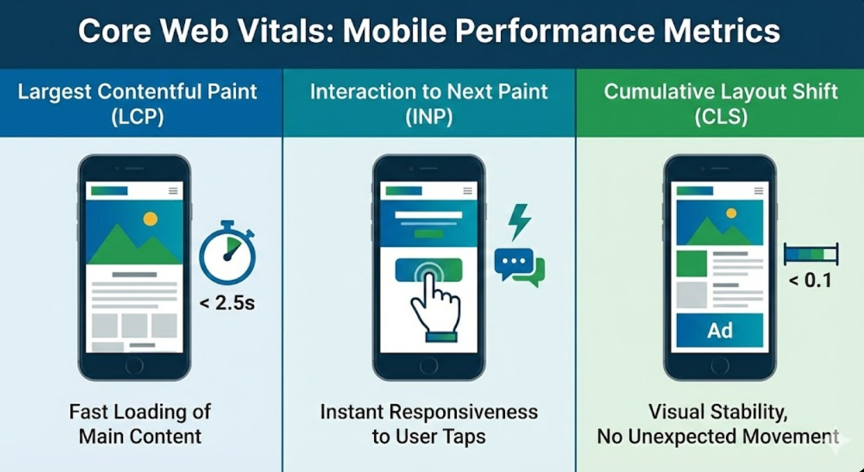 In the mobile-first era, speed is the currency of engagement. Google’s Core Web Vitals explicitly measure user experience metrics that are critical for mobile users. Failing these metrics can result in a direct ranking penalty.