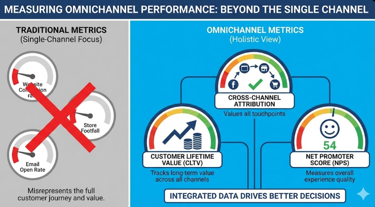 Measurement frameworks for omnichannel effectiveness must capture cross-channel customer behaviour rather than relying on single-channel attribution that systematically misrepresents how customers actually make decisions.