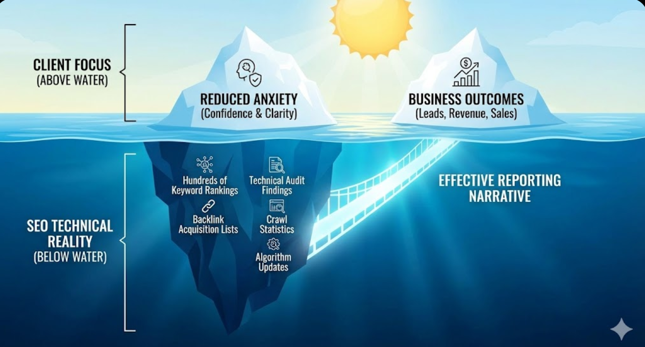SEO reporting quality determines client relationship longevity as much as SEO performance quality—clients who don't understand the value they're receiving cannot sustain investment confidence through the extended timelines that meaningful SEO results require.