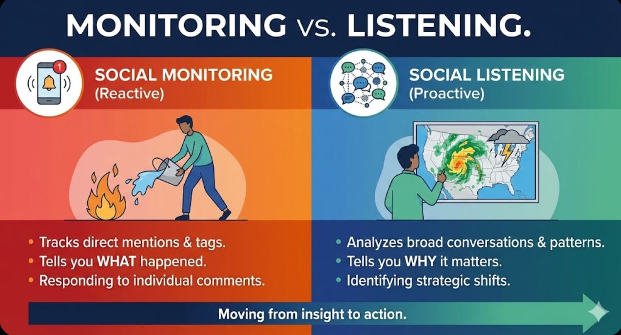 Many Australian businesses confuse social monitoring with social listening. They're related but fundamentally different.