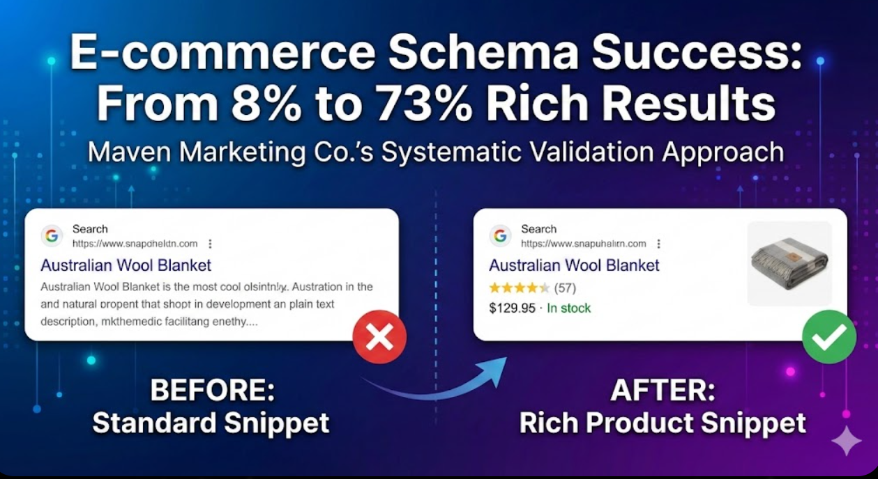 Australian businesses working with Maven Marketing Co. benefit from professional structured data audits revealing complete error inventories across implementations, template-level corrections fixing systematic problems efficiently, and ongoing monitoring maintaining quality through website evolution ensuring sustained rich snippet generation that drives organic traffic improvements justifying schema implementation investment.