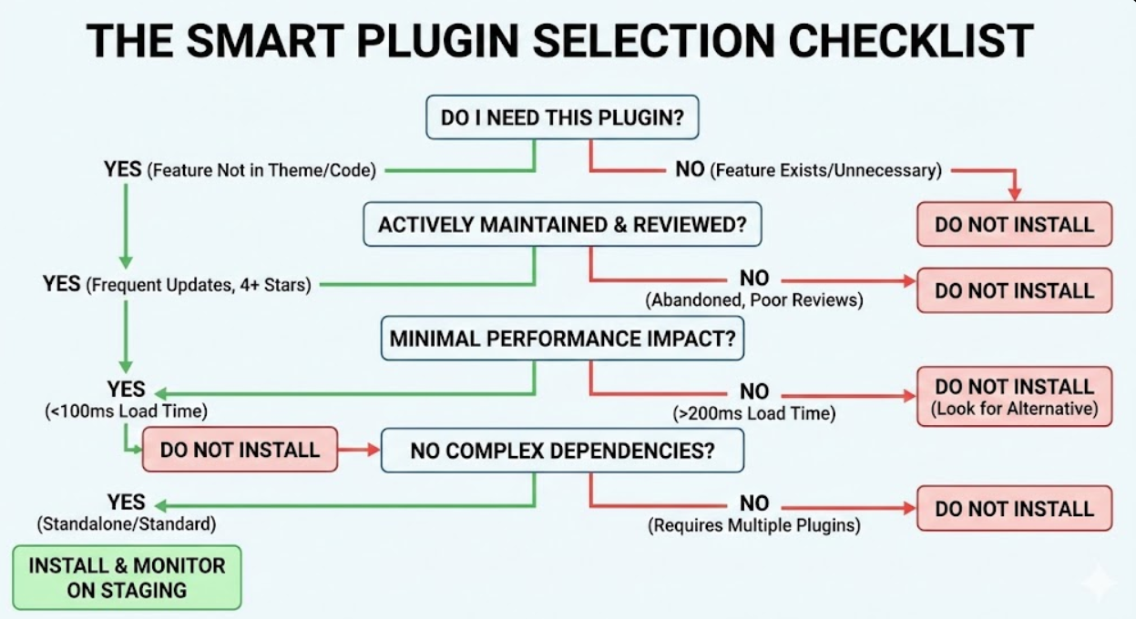 Before installing any plugin, evaluate it against a strict set of criteria.